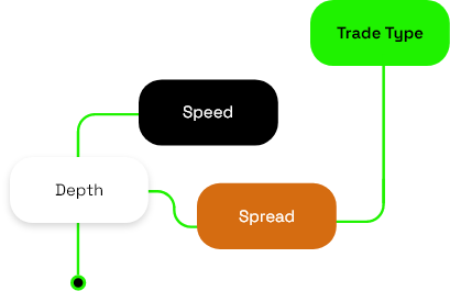 Order routing policies can be customized per client or client group. Routing decisions can be based on depth, speed, spread, or trade type.